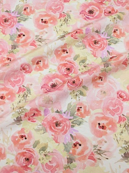 Креп-вискоза (Digital) "Акварельные розы" цв.розовый, ш.1.5м, вискоза-75%, нейлон-25%, 85гр/м.кв