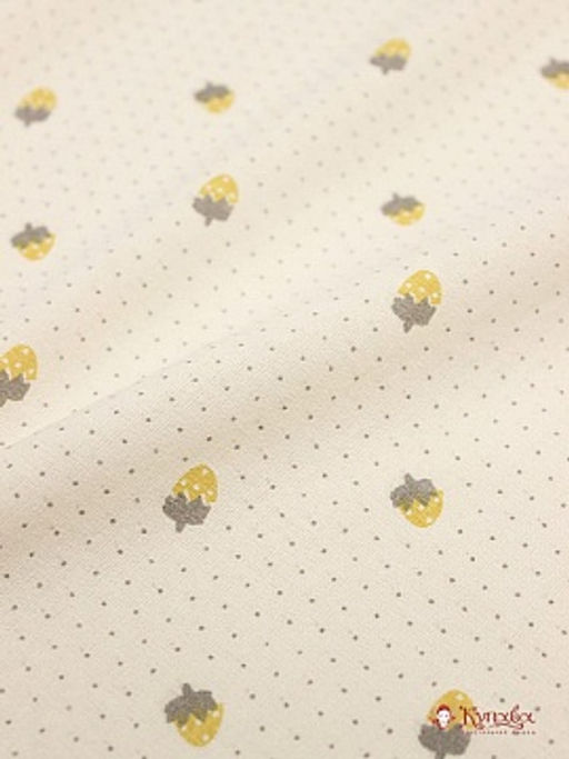 Плательный хлопок с вискозой микроворс "Клубнички" цв.горчичный, ш.1.4м, хл.-50%, вискоза-50%