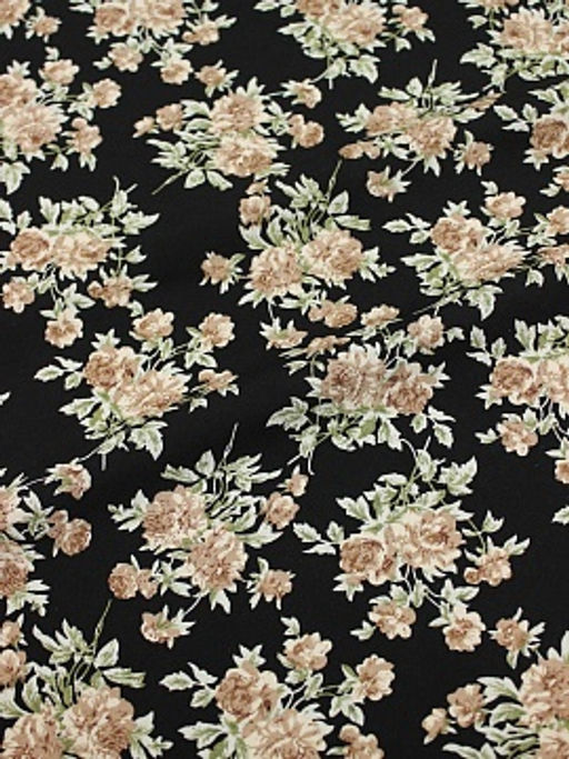 Штапель "Цветочный романс" цв.бежевый/черный, ш.1.44м, вискоза-100%, 90гр/м.кв