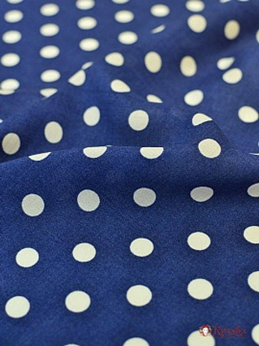 Штапель "Крупный горох на джинсовом синем", ш.1.44м, вискоза-100%, 90гр/м.кв