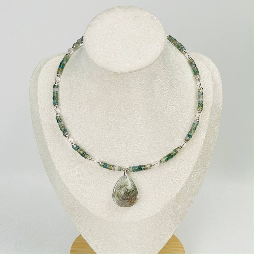 Колье из мохового Агата, Горного Хрусталя и Лодолита