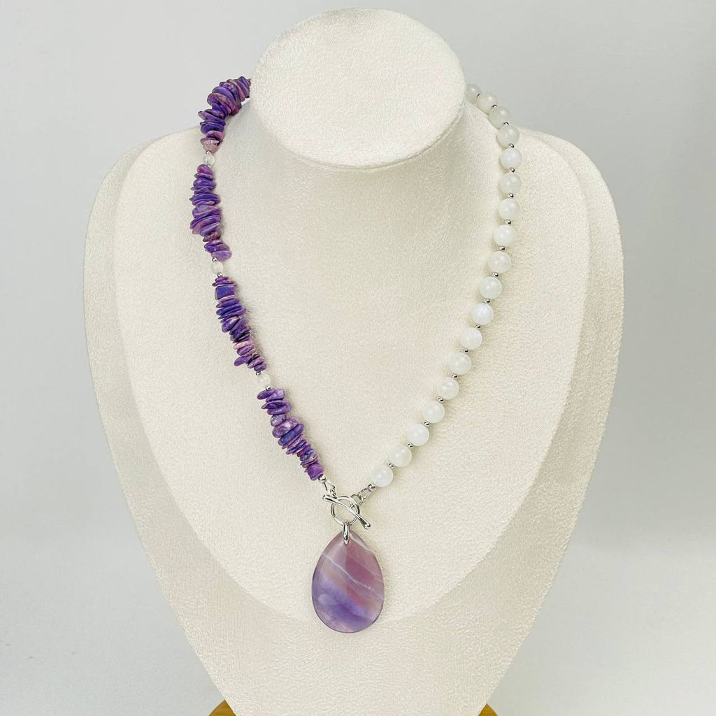 Колье из Чароита, Лунного кмня и Флюорита