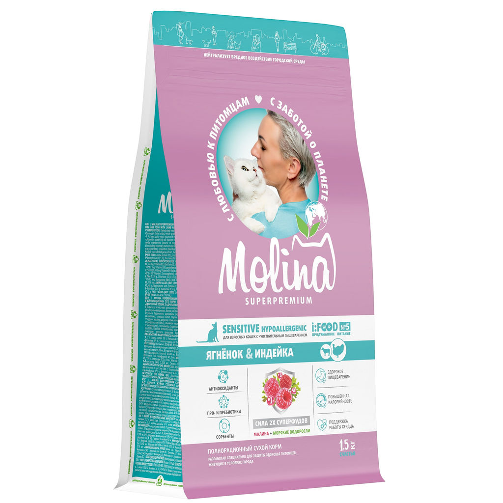 MOLINA, Сухой корм с ягненк и инд для взр.кошек с чувствит.пищеварением,HYPOALLERGENIC,0.4кг,1060796