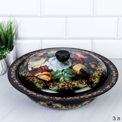 Чаша 3 л с крышкой металл / ER-528 /уп 60/ 0,4/ОРР / 2 СОРТ / в ассортименте