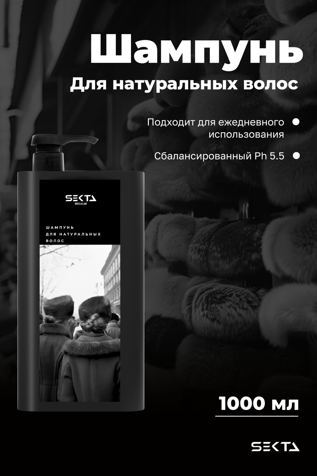 Шампунь для натуральных волос 1000мл HAIR SEKTA