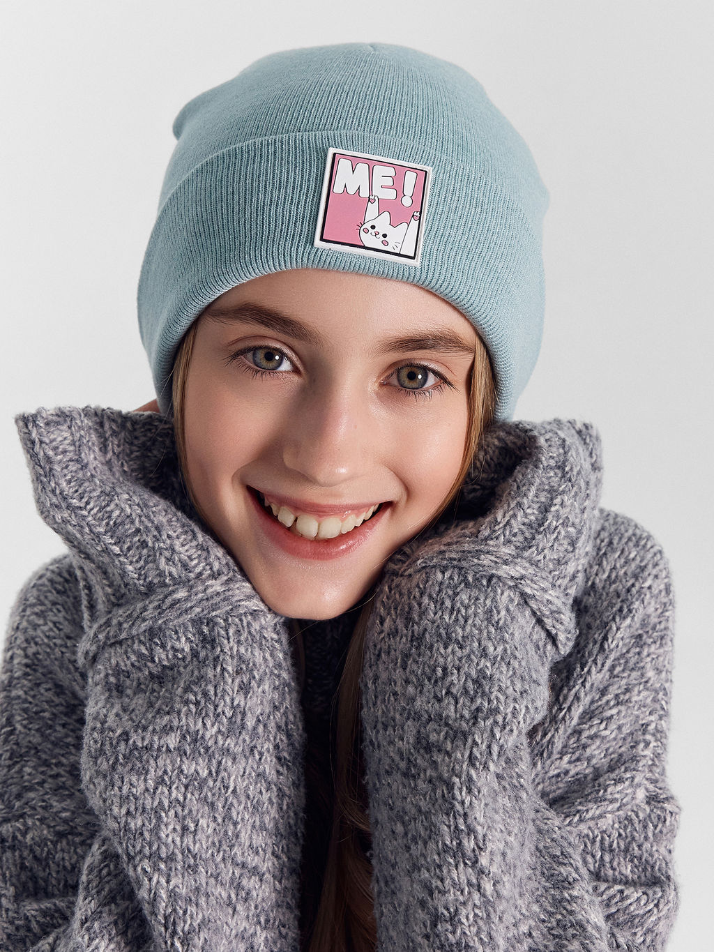 Шапка детская мятная с нашивкой