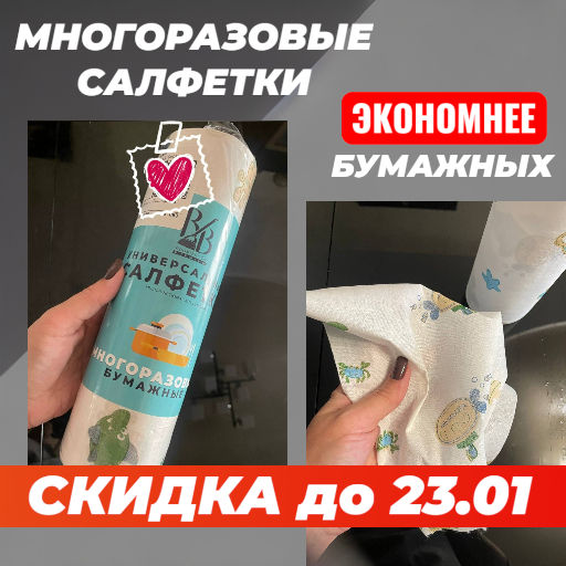 Салфетки многоразовые бумажные в рулоне 50 штук