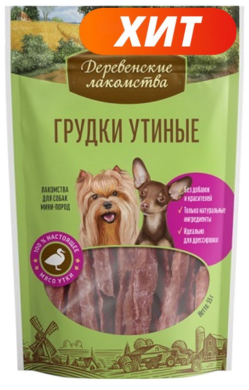 Деревенские лакомства для мини-пород Грудки Утиные 55г