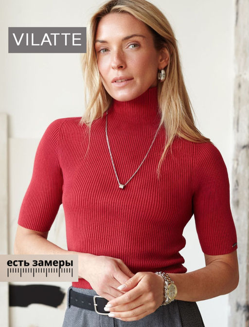 Водолазка тонкой вязки в рубчик из хлопка с нейлоном