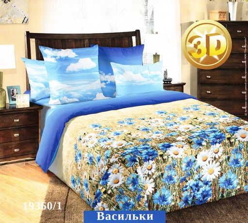 Постельное белье - Перкаль Васильки 2-спальный с Евро простыней (молния)