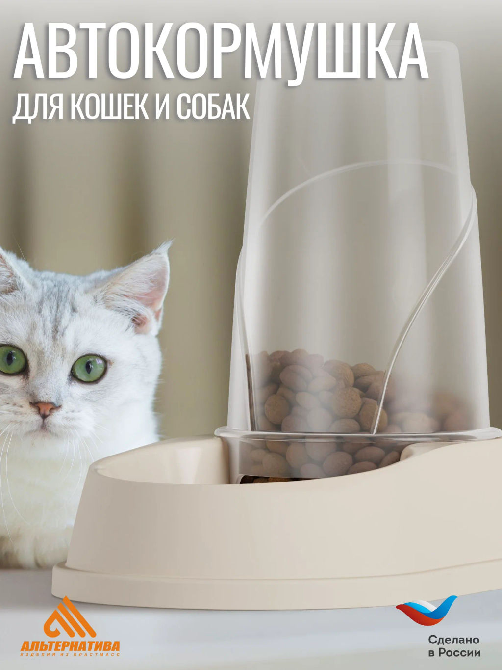 Автокормушка и автопоилка ALTA для кошек и собак 1,5л (бежевый) М8718