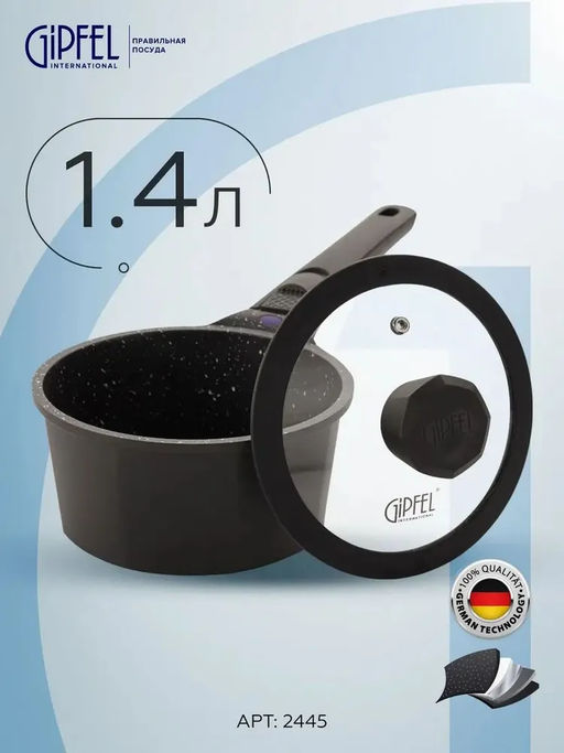 2445 GIPFEL Ковш PROOFET 16х8,5см/1,4л из литого алюминия, со стеклянной крышкой