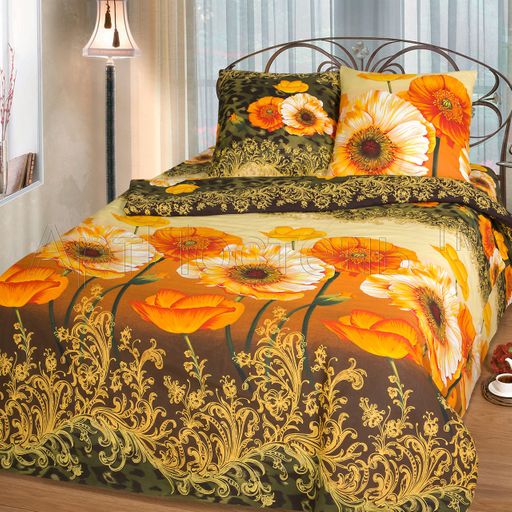 Постельное белье - Бязь Янтарные маки 2-спальный с Евро простыней (молния)