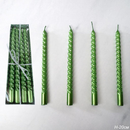 Свеча стержень 4 штуки 20 см витая глянец / MG-104 /уп 144/ зеленая