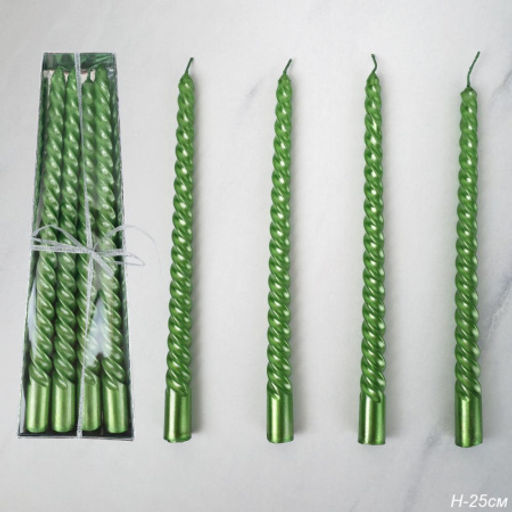 Свеча стержень 4 штуки 25 см витая глянец / LY-153 /уп 144/ зеленая