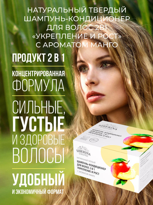 Твердый шампунь-кондиционер для волос 2в1 Укрепление и рост с ароматом манго