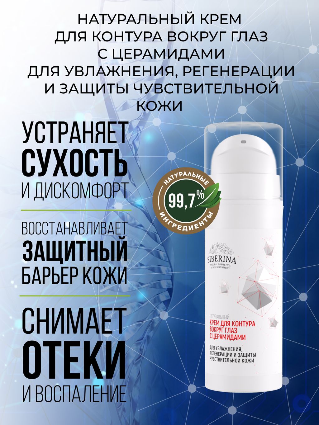 Крем для контура вокруг глаз с церамидами для увлажнения, регенерации и защиты чувствительной кожи