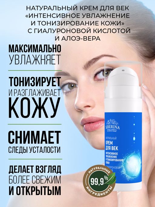 Крем для век Интенсивное увлажнение и тонизирование кожи с гиалуроновой кислотой и алоэ-вера
