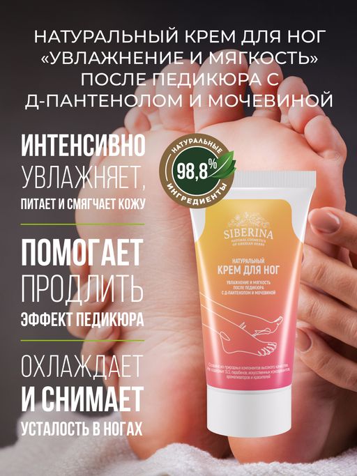 Крем для ног "Увлажнение и мягкость" после педикюра с Д-пантенолом и мочевиной