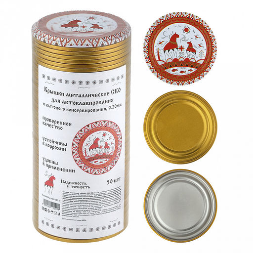 Цена за 50 шт. Крышка СКО1-82-20 "Надежность и точность", для автоклавирования и бытового консервирования, с уплотнителем, пищевая жесть марки ЭЖК, ТУ BY 810001397.001-2017, s0,20мм, упаковка: 49шт золото/1шт литография , термоусадочная пленка, т.м. Maria