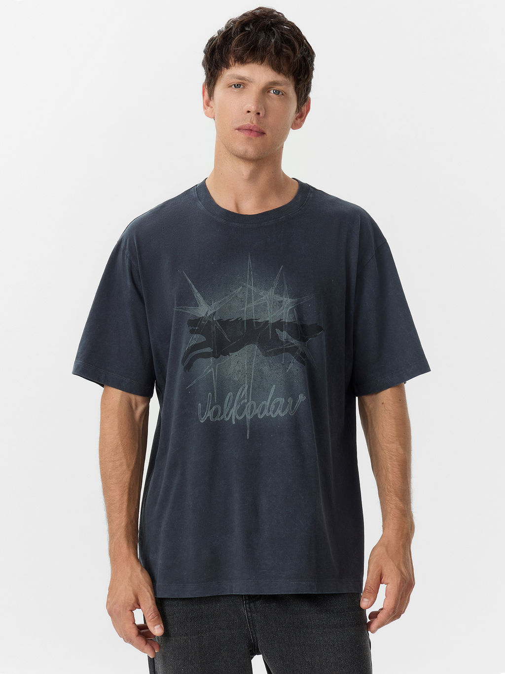 Футболка мужская серая с принтом и надписью "Volkodav"