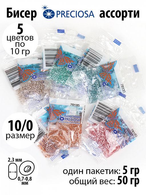 Бисер TBY ассорти №2 - серебристый центр уп.50гр (5цв х 2шт)