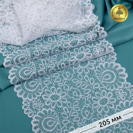 Кружево-стрейч KRUZHEVO арт.TBY.YSTL00839 шир.205мм цв.01 белый уп.25м