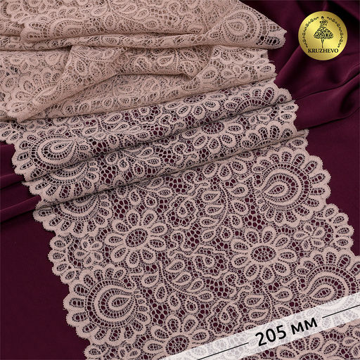 Кружево-стрейч KRUZHEVO арт.TBY.YSTL00839 шир.205мм цв.168 серебристый пион уп.25м