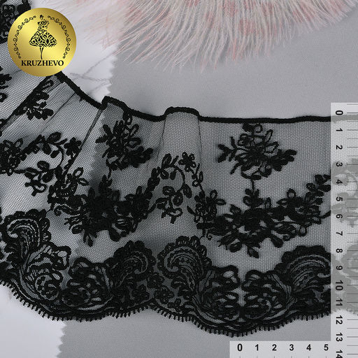 Кружево на жесткой сетке матовая нить арт.TBY.BL.40466 шир.130мм цв.19 черный уп.13,71м