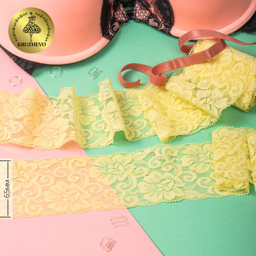 Кружево-стрейч KRUZHEVO арт.TBY.L840 шир.65мм цв.12 бл.желтый уп.25м