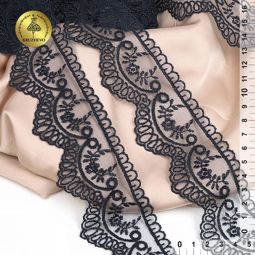 Кружево на сетке KRUZHEVO арт.TR.1158A шир.50мм цв.03 т.синий уп.12м