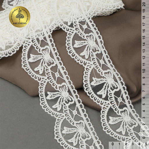 Кружево на сетке KRUZHEVO матовая нить с бантиками арт.TR.635 шир.60мм цв.02 молочный уп.10м
