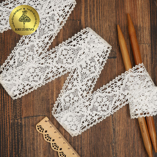 Тесьма вязаная KRUZHEVO 40мм TBY.D1003 цв.01 белый уп.10м