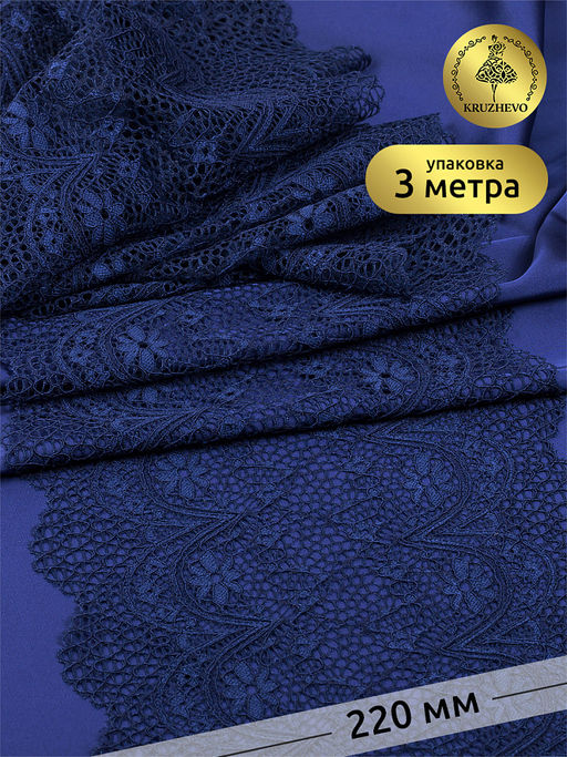 Кружево-стрейч KRUZHEVO арт.TBY 8013 шир.220мм цв.S919 темно-синий уп.3 м