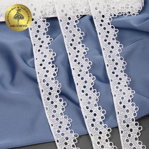 Кружево гипюр матовая нить KRUZHEVO арт.TBY.0868 шир.30мм цв.белый уп.13,71м