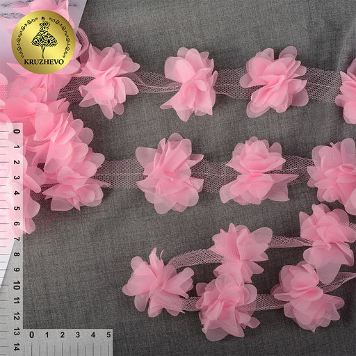 Кружево 3D арт.TBY.1312 Цветы цв.02 нежно-розовый, уп.9,14м