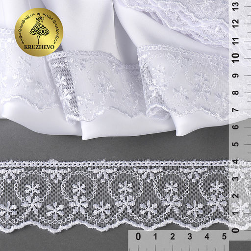 Кружево на сетке KRUZHEVO арт.TR.2560 шир.40мм цв.01 белый уп.9м