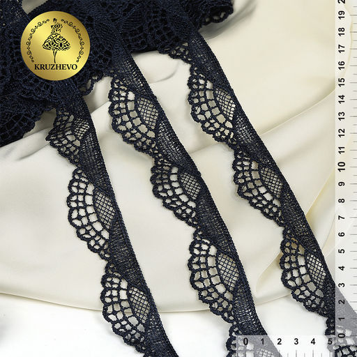 Кружево гипюр KRUZHEVO арт.TBY.2503 шир.28мм цв.B4815 темно-синий уп.13,71м