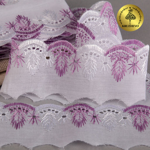 Кружево шитье арт.ТСВ-2028 шир.5см цв.101/164 сиреневый 100% п/э,уп.13,71м