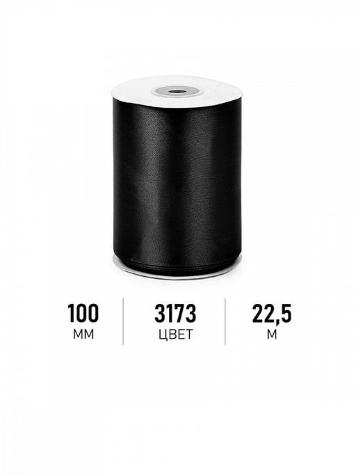 Лента атласная 100мм цв. 3173 черный Magic4Hobby уп. 22,5м (1м) картон/пенопласт