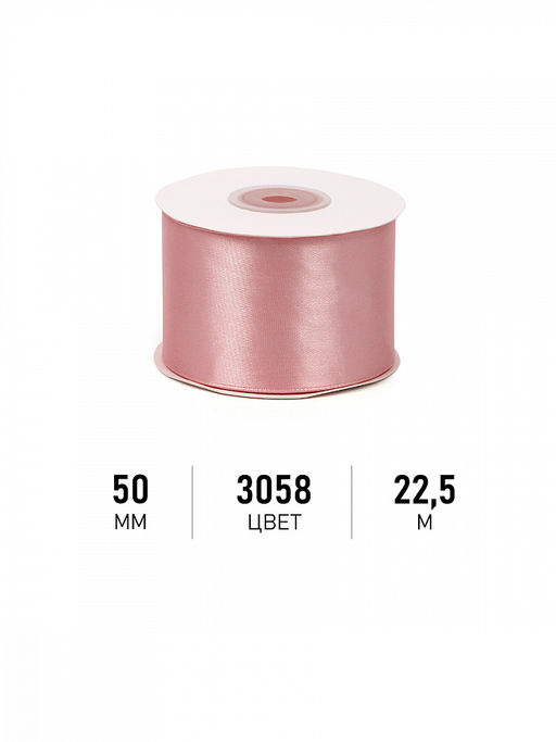 Лента атласная 50мм цв. 3058 св.гр.розовый Magic4Hobby уп. 22,5м (1м) картон