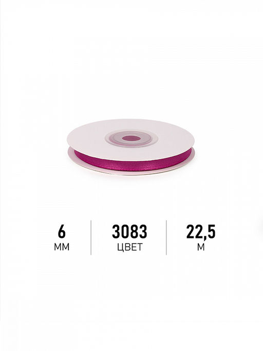 Лента атласная 6мм цв. 3083 фуксия Magic4Hobby уп. 22,5м (1м) картон/пенопласт