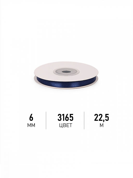 Лента атласная 6мм цв. 3165 синий Magic4Hobby уп. 22,5м (1м) картон