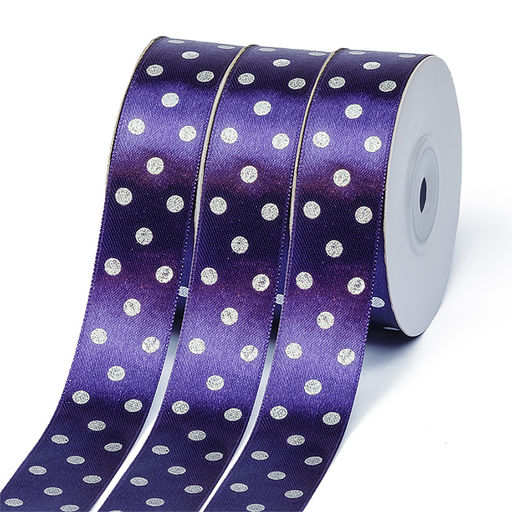 Лента атласная Ideal горошек серебро шир.25мм LDAS476 цв.476 фиолетовый уп.27,4м