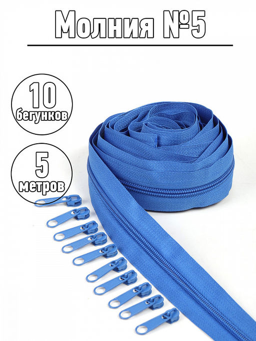 Набор молния Mzip рулонная 5м, бегунки 10шт для спирали №5 цв.F213 васильковый