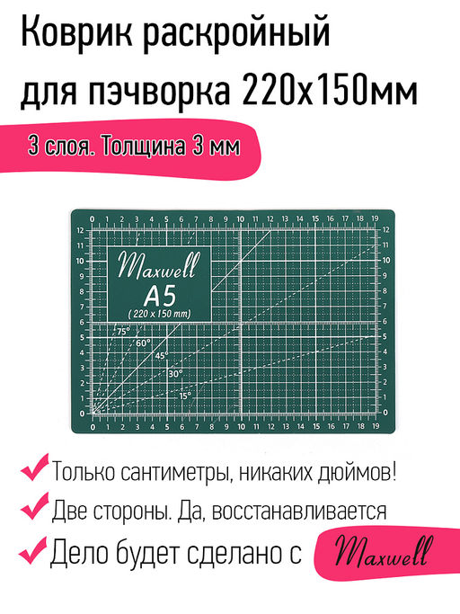 Maxwell коврик раскройный для пэчворка 3мм (A5) 22*15см двухсторонний трёхслойный