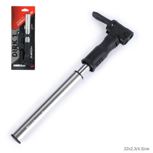 Велонасос COMIRON DIRK 1, алюминиевый цилиндр, пластиковая ручка, телескопическая головка на шланге, Presta-Schrader-Dunlop, 8,3 бар. /уп 100