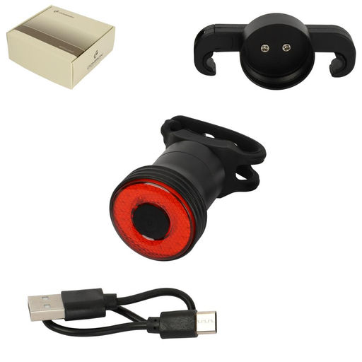 Фонарь задний интеллектуальный COMIRON "FOCUS" корпус авиационный CNC alloy; свет LED; Аккум 400mAh, Type-C; Крепеж: ремень/седло. Вес 43гр. /уп120/