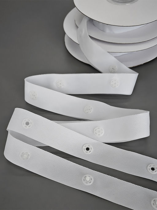 Кнопки пластиковые 8мм на ленте шир.18мм шаг 40мм TBY-64421 цв. белый уп. 5м