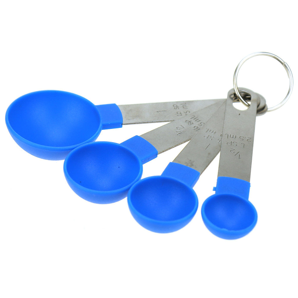Ложка мерная пластмассовая, набор 4 штуки 2,5мл; 5мл; 7,5мл; 15мл, цвета микс, ручка из нержавеющей стали, на картоне (Китай)